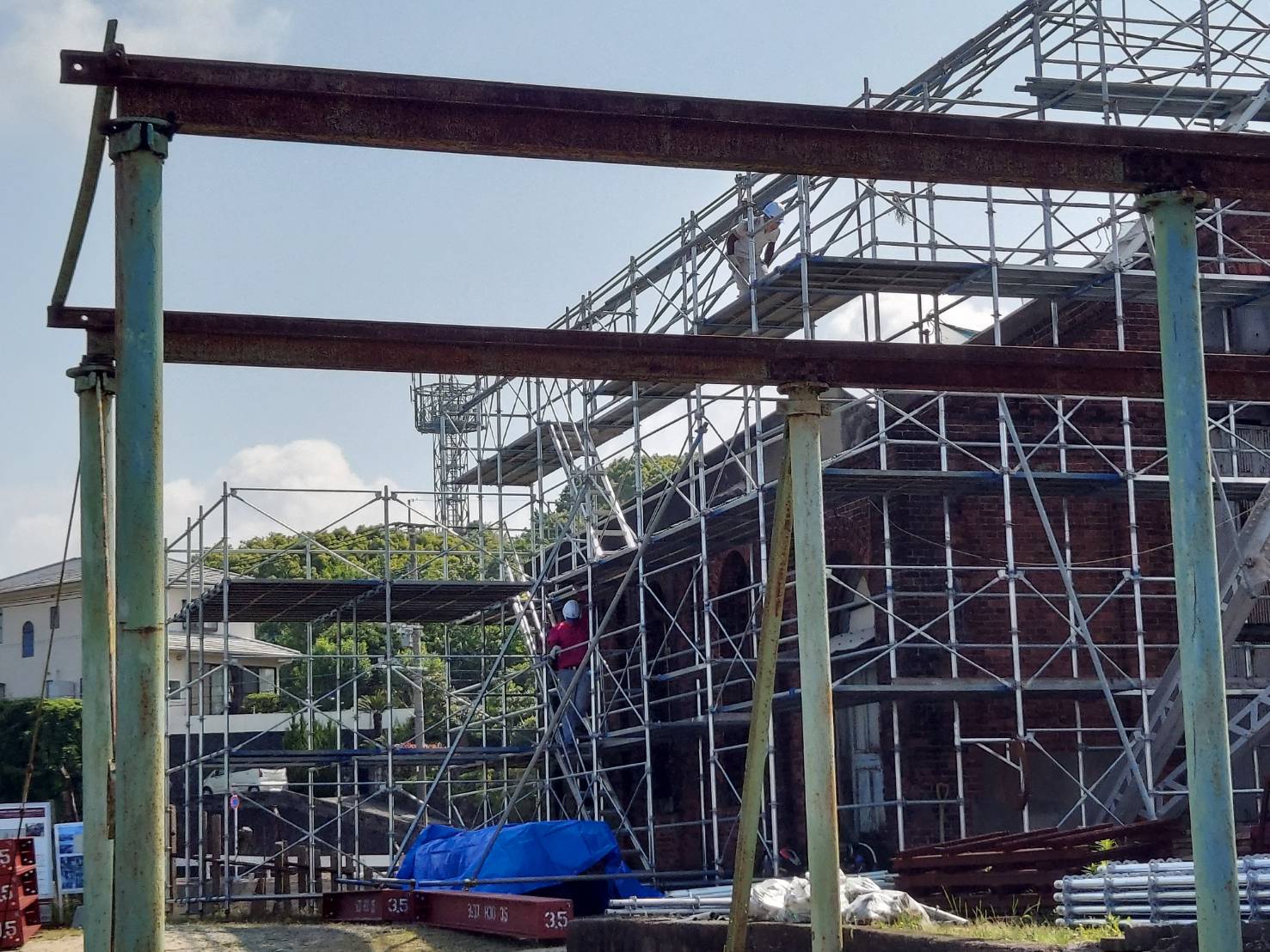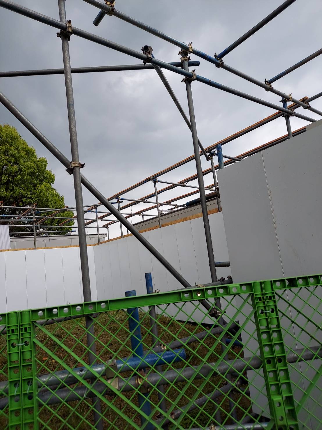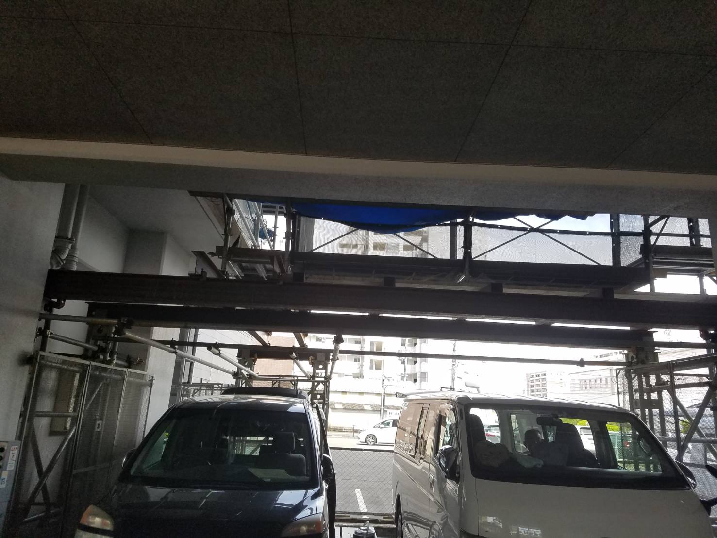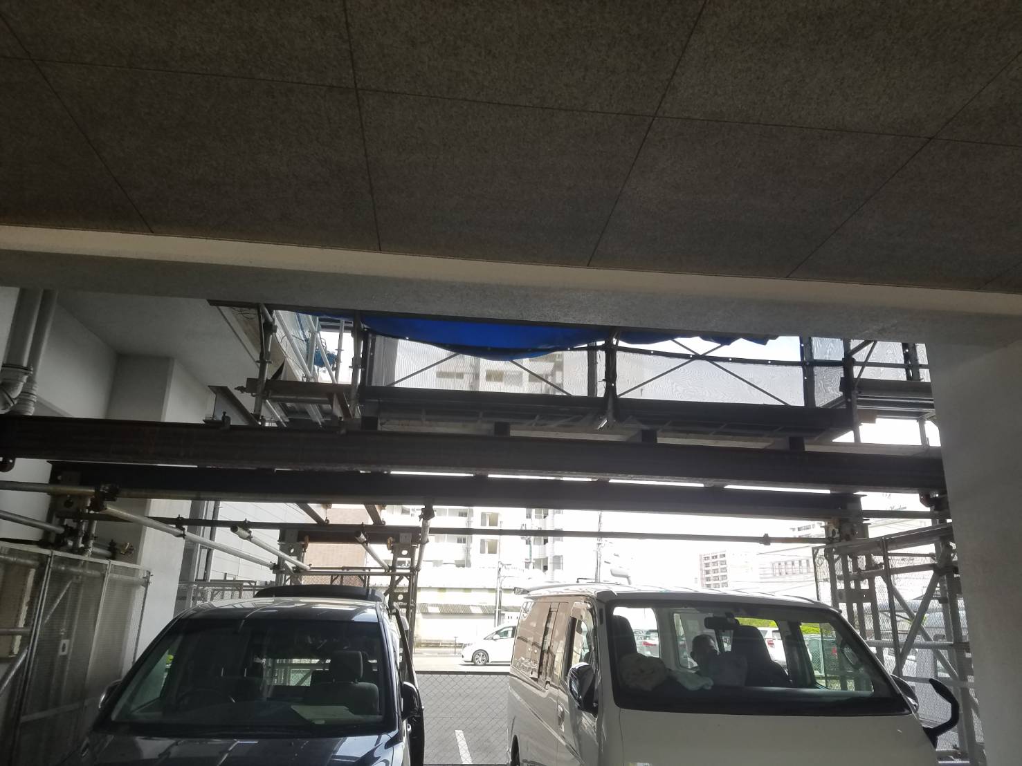 久留米市工事名:車検場、庇工事ステージ